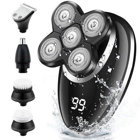 5 in 1 Electric Shaver for Men & Grooming Kit Electric Razor Cordless Wet Dry Rotary Bald Head Shaver Nose Trimmer Hair Clippers