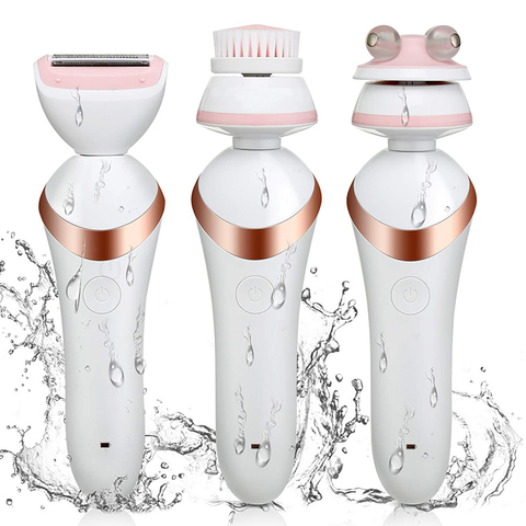 3 in 1 Multi-Function Wet Dry Rechargeable Painless Electric Lady Shaver Bikini Trimmer with Facial Cleansing Brush and Massager