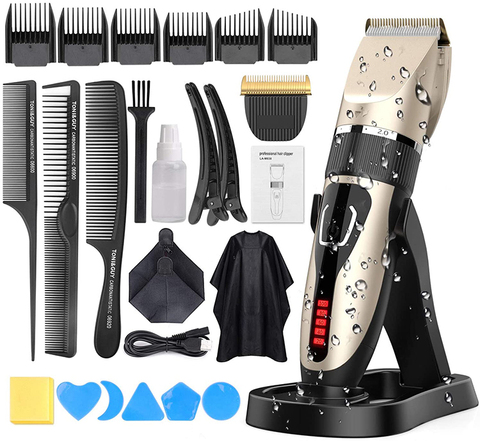 Professional Rechargeable Hair Clippers for Men Cordless Hair Trimmer Beard Trimmer IPX7 Waterproof Hair Cutting Kit