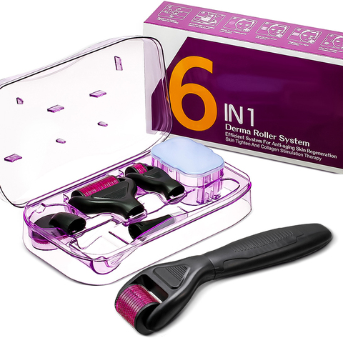 Bộ Dụng Cụ Lăn Kim 6 Trong 1, 0.5 + 1.0 + 1.5 + 2.0MM Titanium Micro Needle Roller Với 5 Đầu Kim Thay Thế 12/300/720/1200